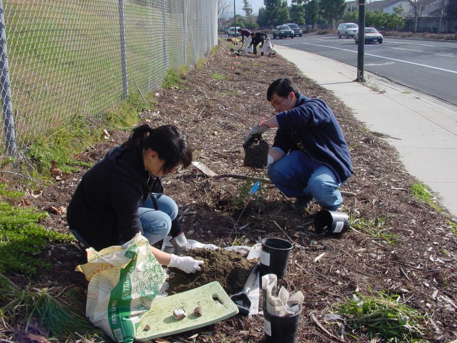 In 2007, the bed facing Tully Road was mulched and planted with native plants