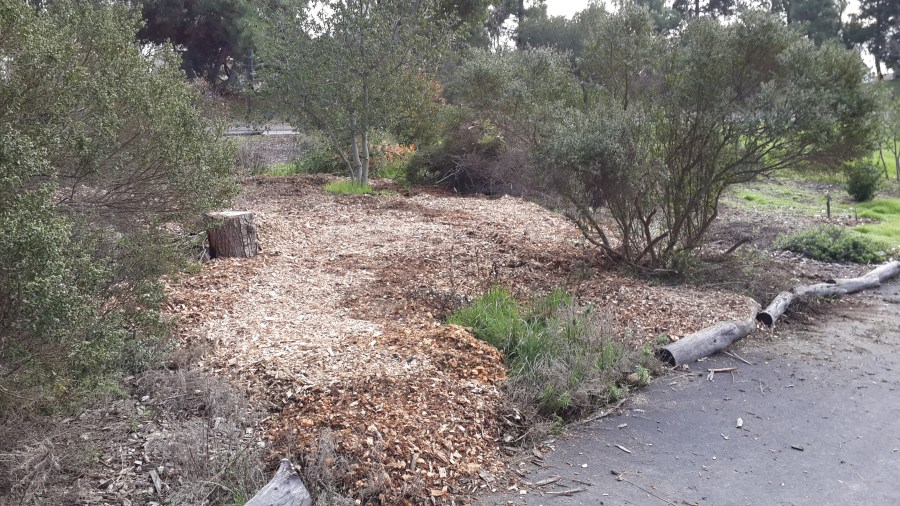 The invasive grasses on the left side of the path have been conquered
